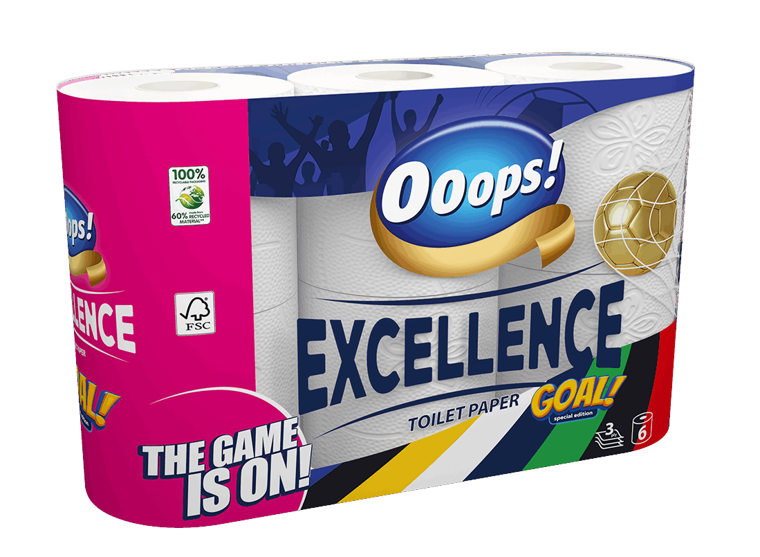 De extra stora rullarna Ooops! Maxi toalettpapper tillverkas i en av Europas modernaste pappersfabriker av Vajda Papir Ungern. Pappret tillverkas enligt högsta kvalitetskrav av nyfibermassa från Nordiska skogar. Förpackningarna innehåller 60% återvunnen plast.